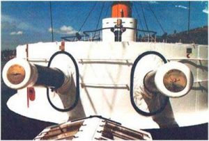 En el combate de Angamos resultó perforada por disparos de ametralladora.