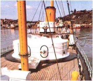 Huáscar: Vista de la cubierta del Huáscar en Talcahuano