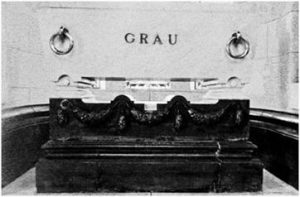 El 26 de Octubre de 1879, lo pocos restos de Grau, fueron llevados al mausoleo de la familia Viel en el cementerio de Santiago