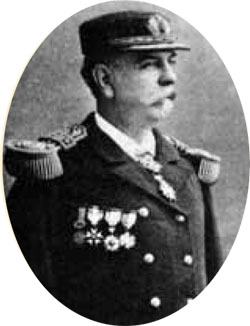 Al entrar en combate el contraalmirante vestía pantalón azul sin galón, levita paletó de paño castor del mismo color con 3 botones prendidos en las bocamangas; llevaba prendidas las presillas del capitán de navío, calada la gorra con placa y calzado botines de cuero con elásticos.